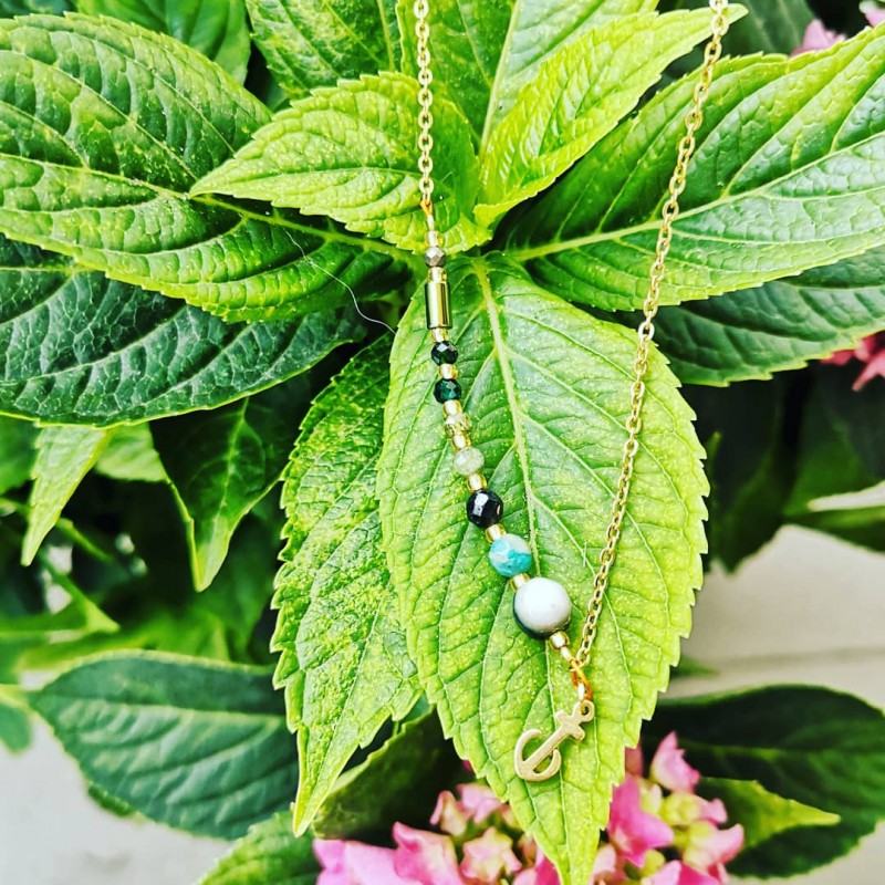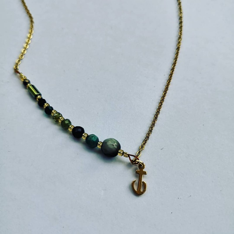 Przepiękny i delikatny naszyjnik z drobnych kamieni naturalnych oraz pozłacanej stali szlachetnej. Kamienie w kolorze zieleni i turkusu idealnie komponują się ze złotym kolorem łańcuszka.